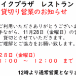 2025/11/24 お知らせ レイクプラザ レストラン 貸切り営業のお知らせ